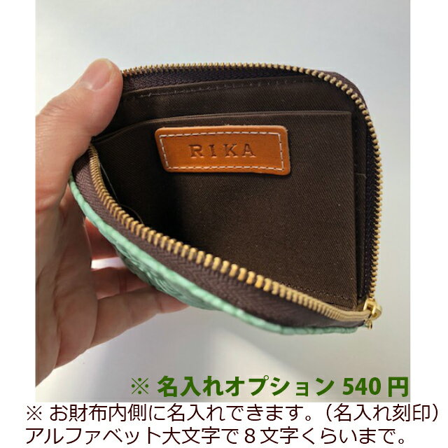 革工房ナスタチウムの革財布・内側に名入れ承ります。