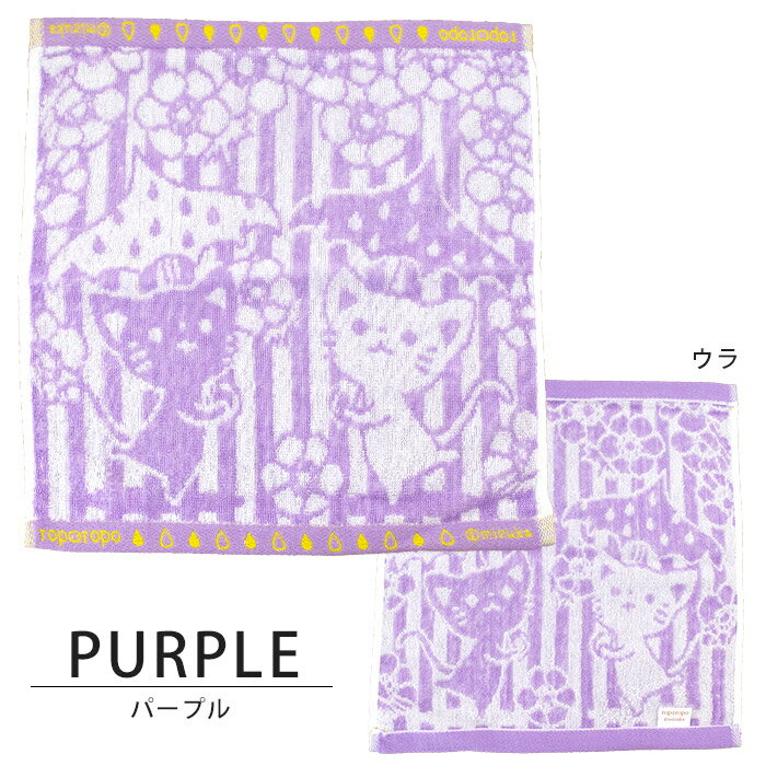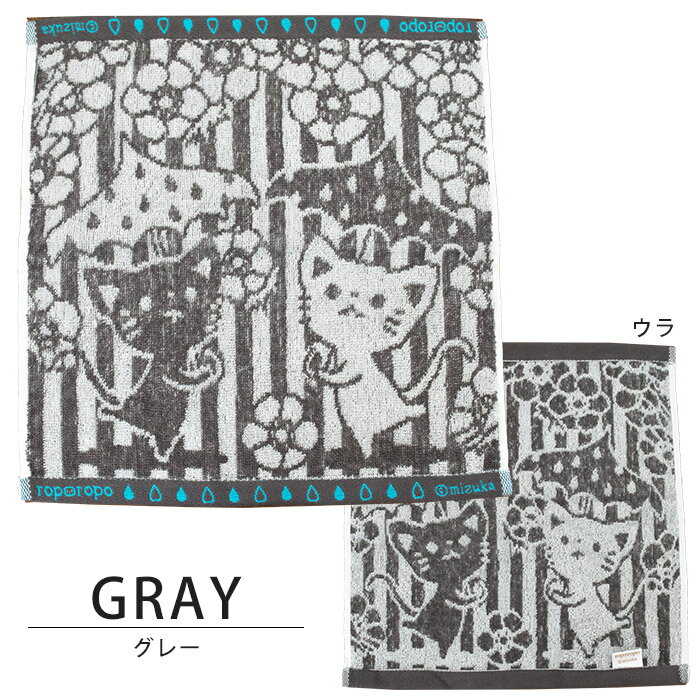 【エントリー&楽天カードでP10倍】ウォッシュタオル ハンドタオル roporopo レインフラワー mizuka 34×35cm タオル 猫 ネコ ボーダー 花 フラワー かわいい グレー パープル 綿100%【プチギフト】