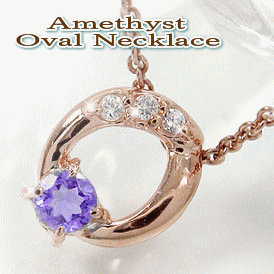 【送料無料】アメジスト ネックレス k18ピンクゴールド k18PG ダイヤモンド オーバル レディース誕生日 2017 記念日プレゼント パワーストーン 2月 誕生石