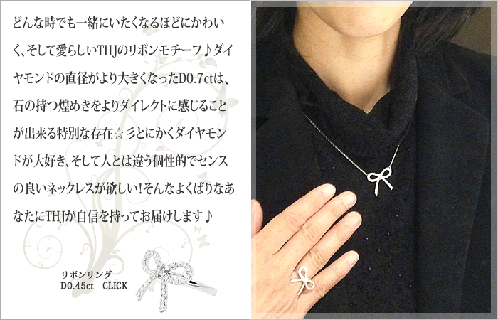 ダイヤモンド専門店 0.7ct K18 THJ Ribbonネックレス D0.7ct リボン ゴールド 高品質SIクラス以上 18金 18k ネックレス イエローゴールド ホワイトゴールド ピンクゴールド アズキチェーン