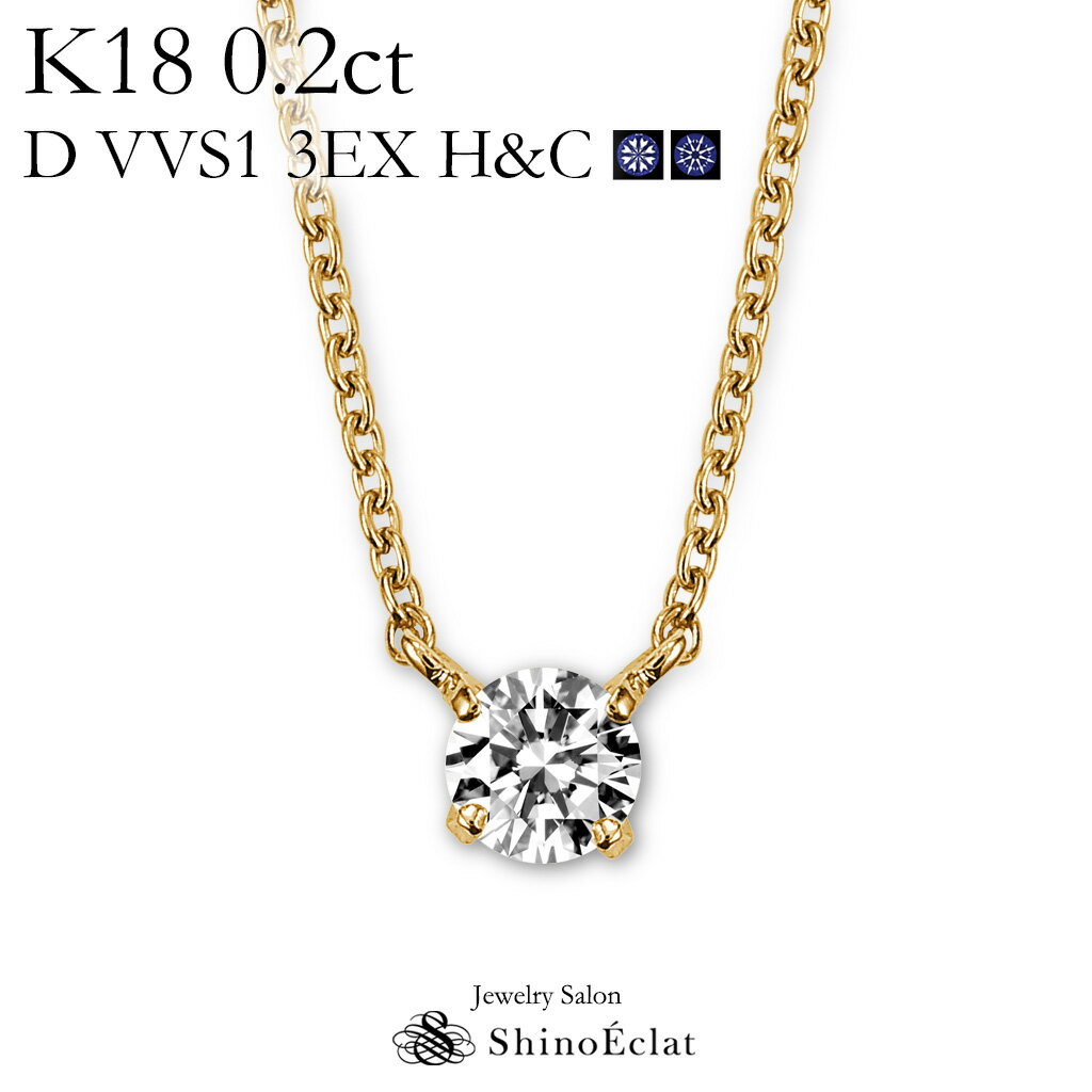 K18 ダイヤモンド ネックレス 一粒 Quatre(キャトル) 0.2ct D VVS1 3EX(トリプルエクセレント) H&C 鑑定書 excellent 0.2カラット diamond necklace gold ladies レディース 18k 18金 一粒ダイヤ